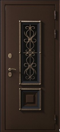 Дверь Стальная на гнутом профиле с ковкой со стеклопакетом и декоративными элементами